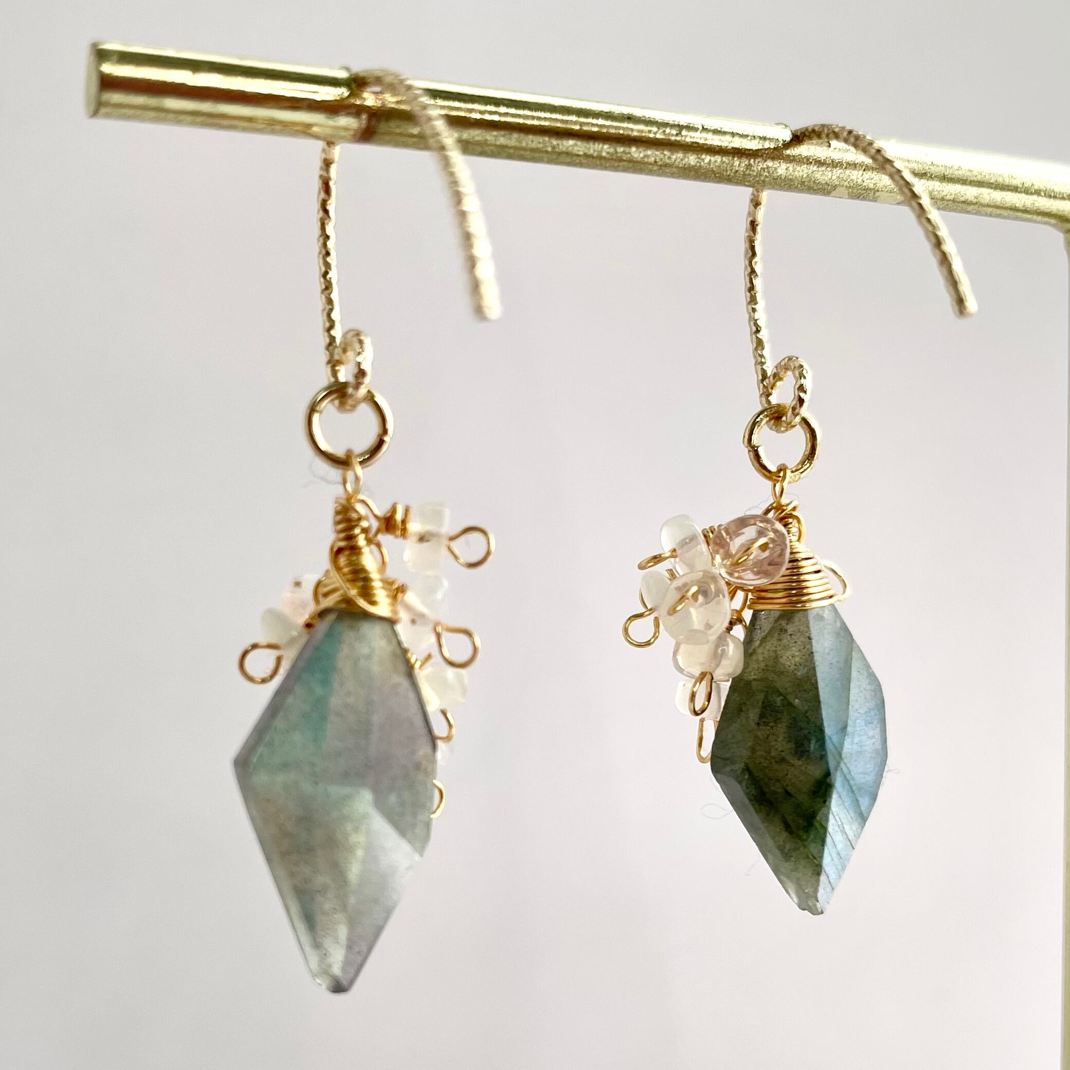 美シラー⭐︎ラブラドライトのスピンドルカットとプレシャスオパールのピアス