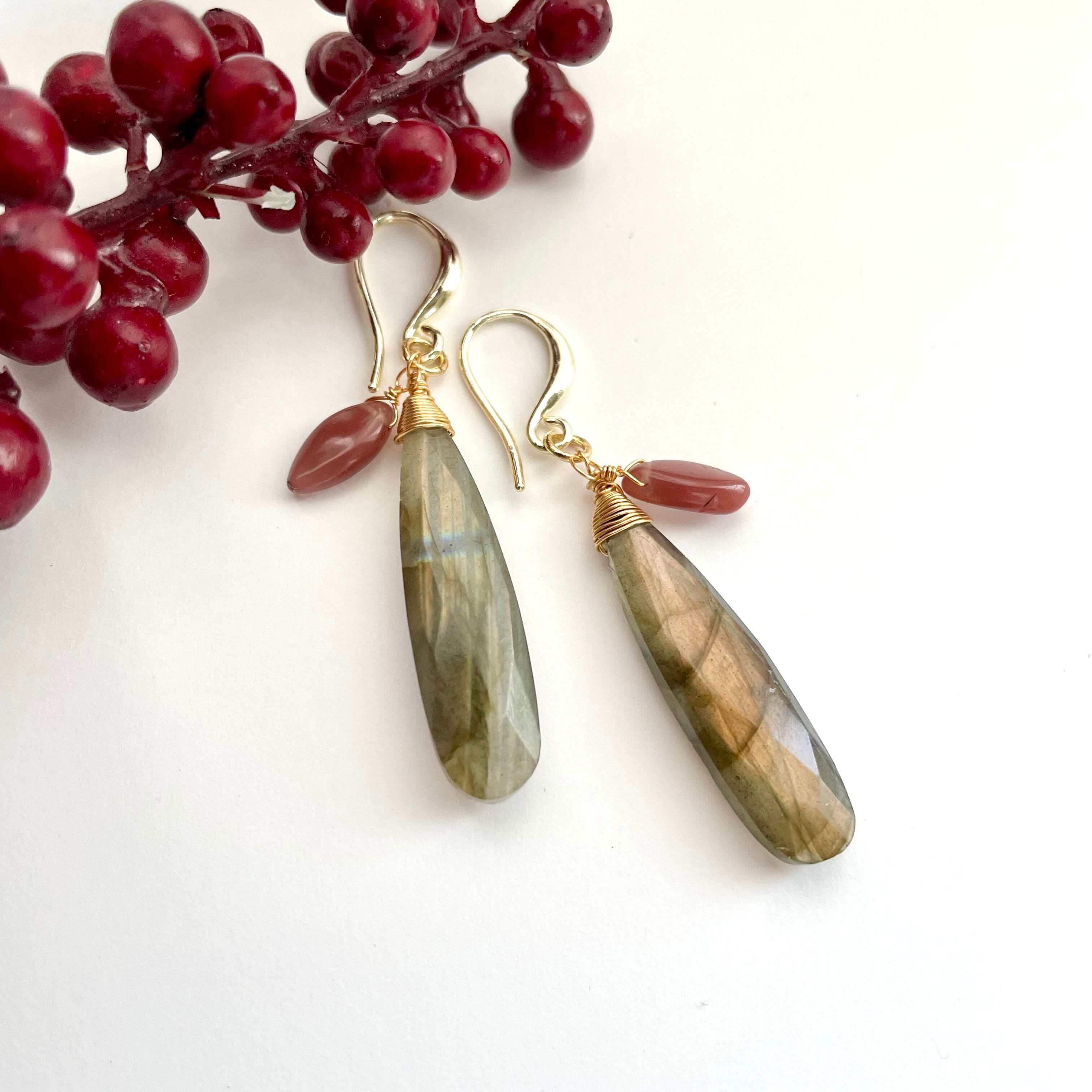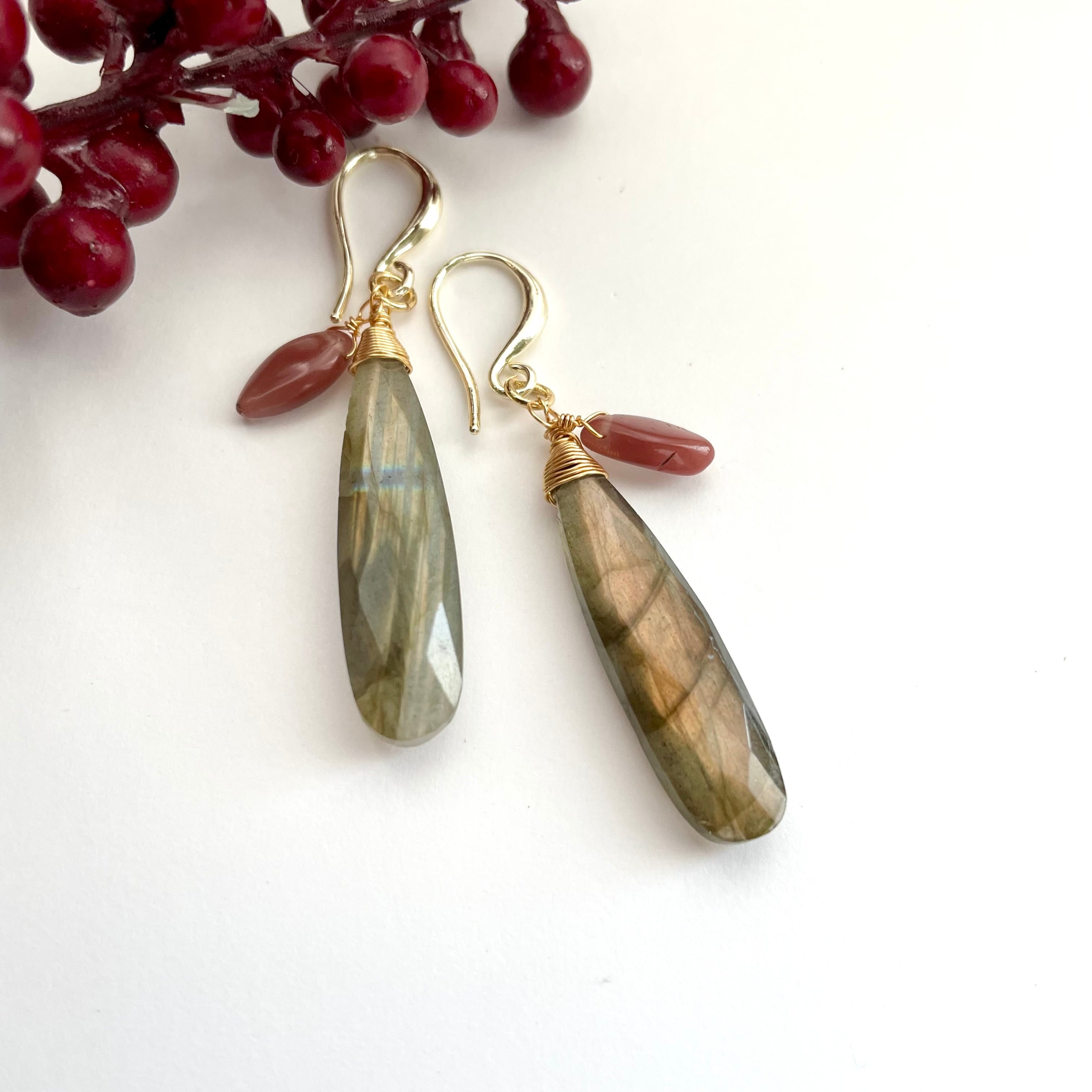 ピンクシラー✳︎ラブラドライトとアンデシンのピアス