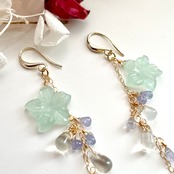 ジャスミンの花❁ミントグリーンカルセドニーとタンザナイト、グリーンアメジストのピアス