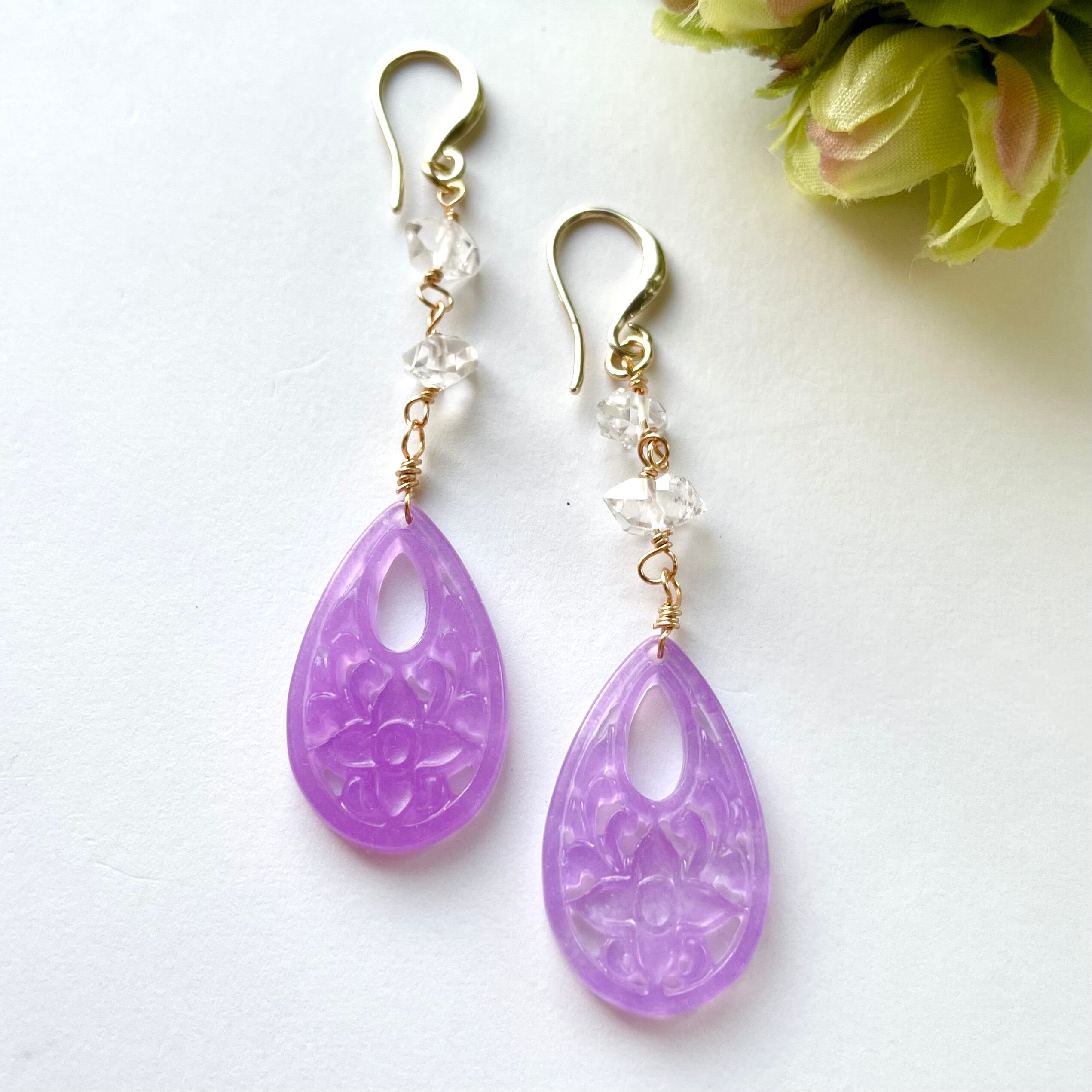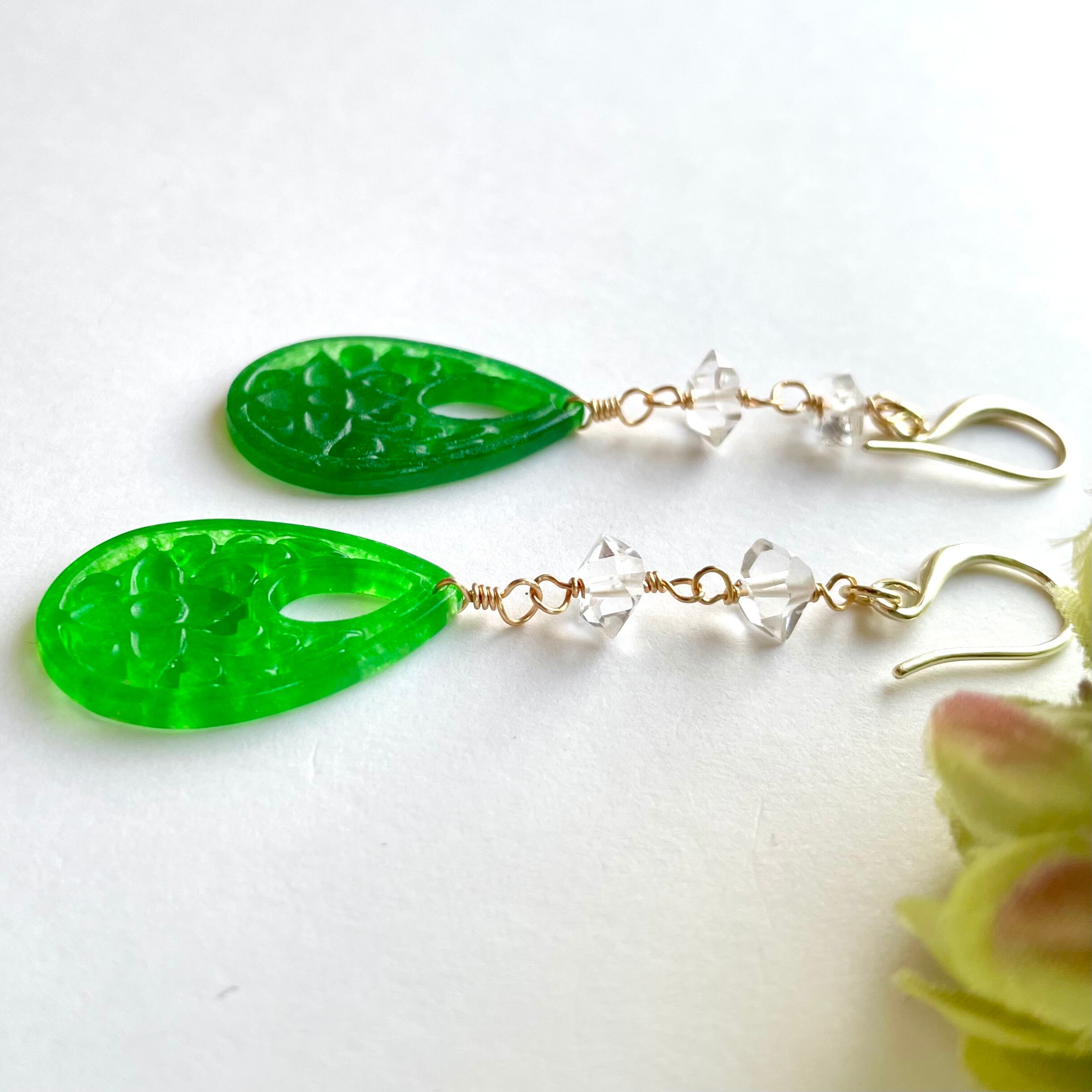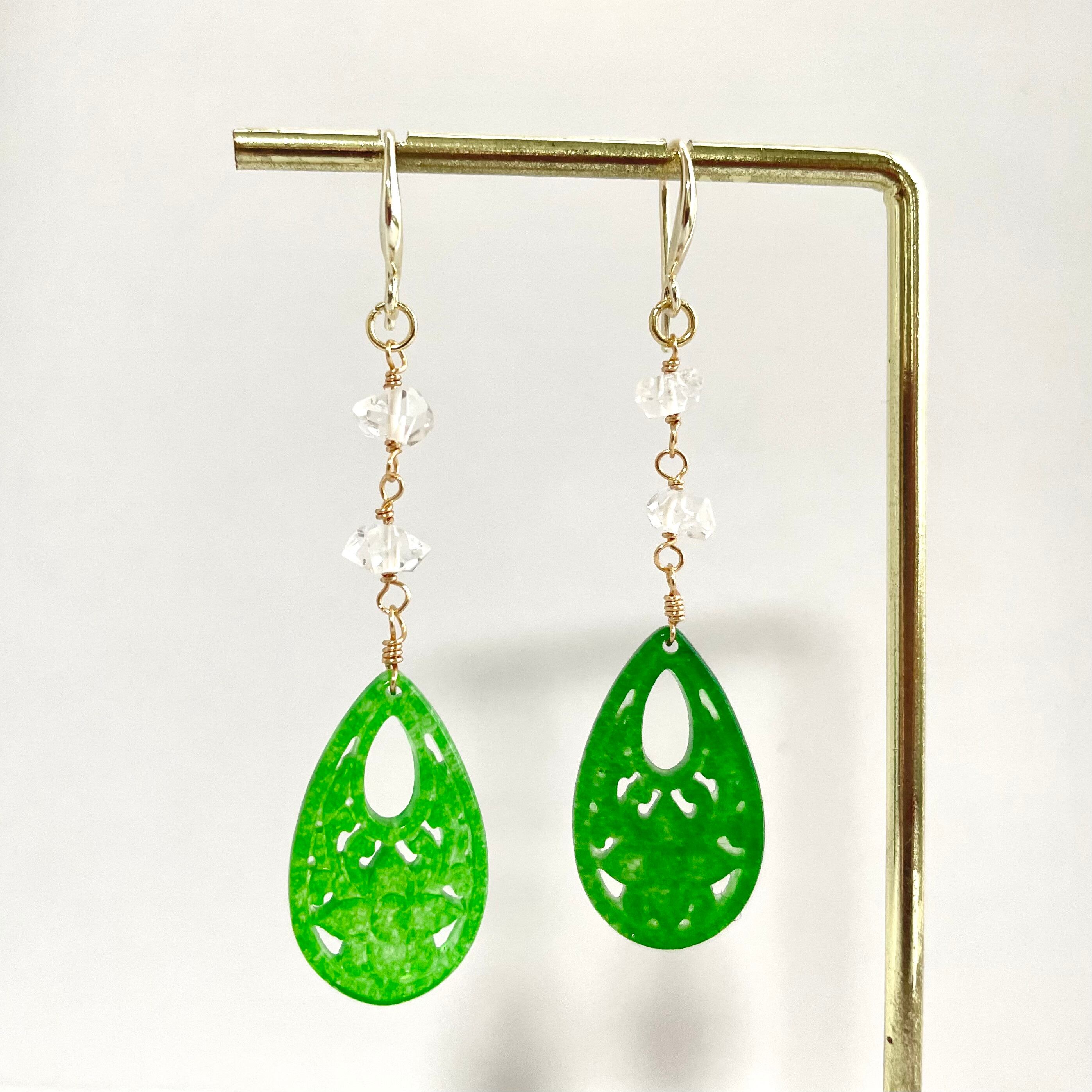 カラフル夏*選べるカラー!ジェイドとハーキマーダイヤモンドのピアス