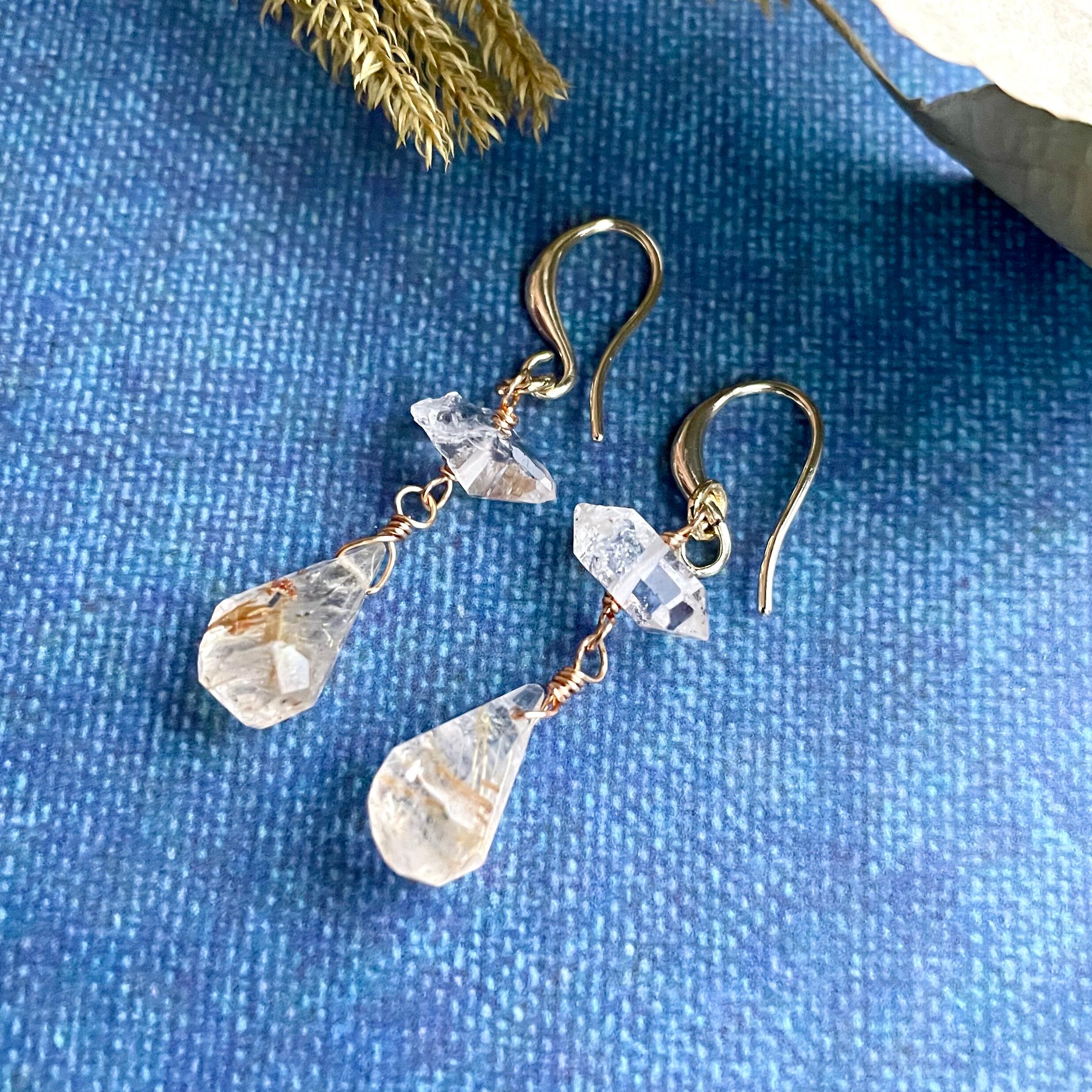 ナチュラルなルチルクォーツと両剣水晶のピアス