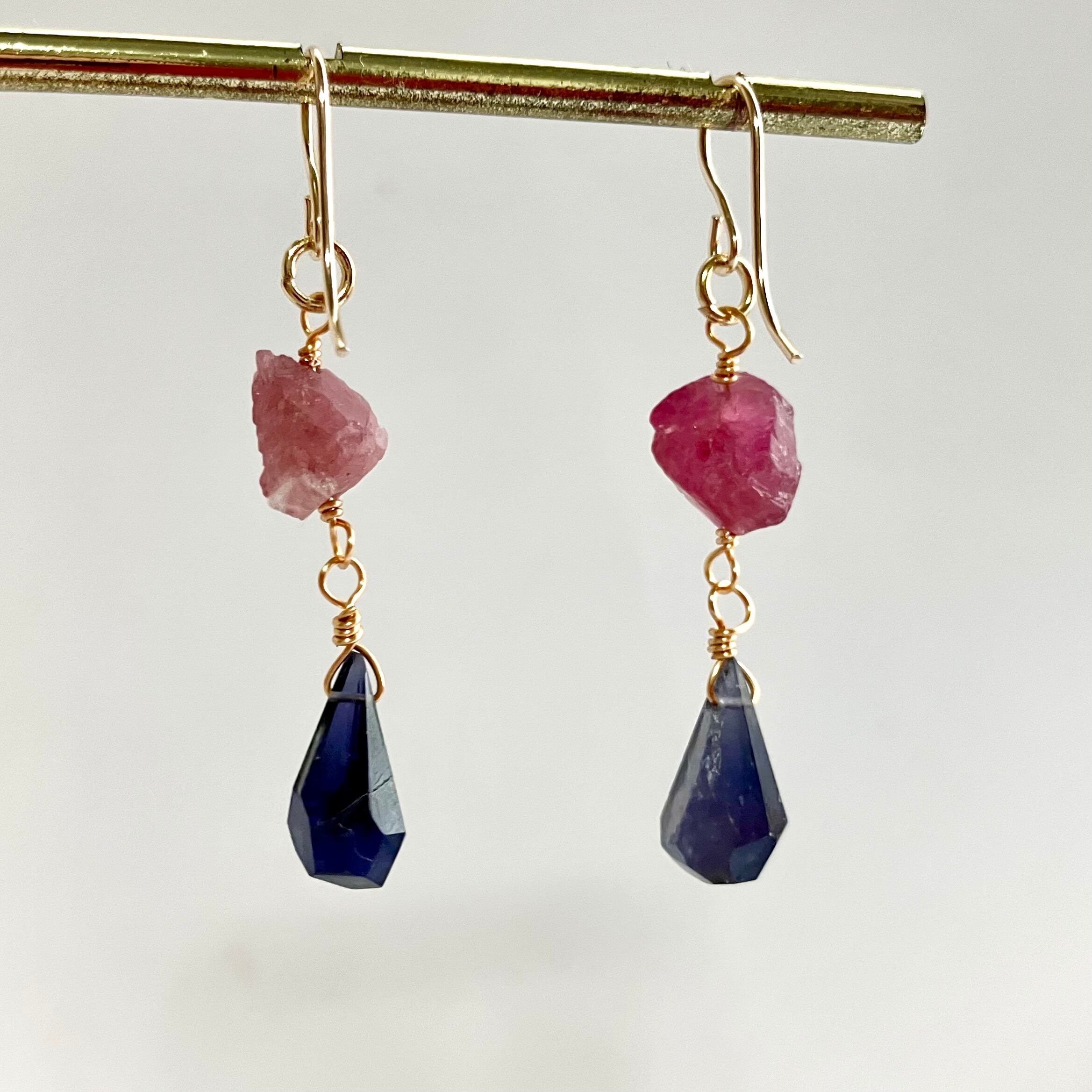 ラフロックのピンクトルマリンとアイオライトのピアス