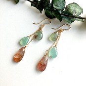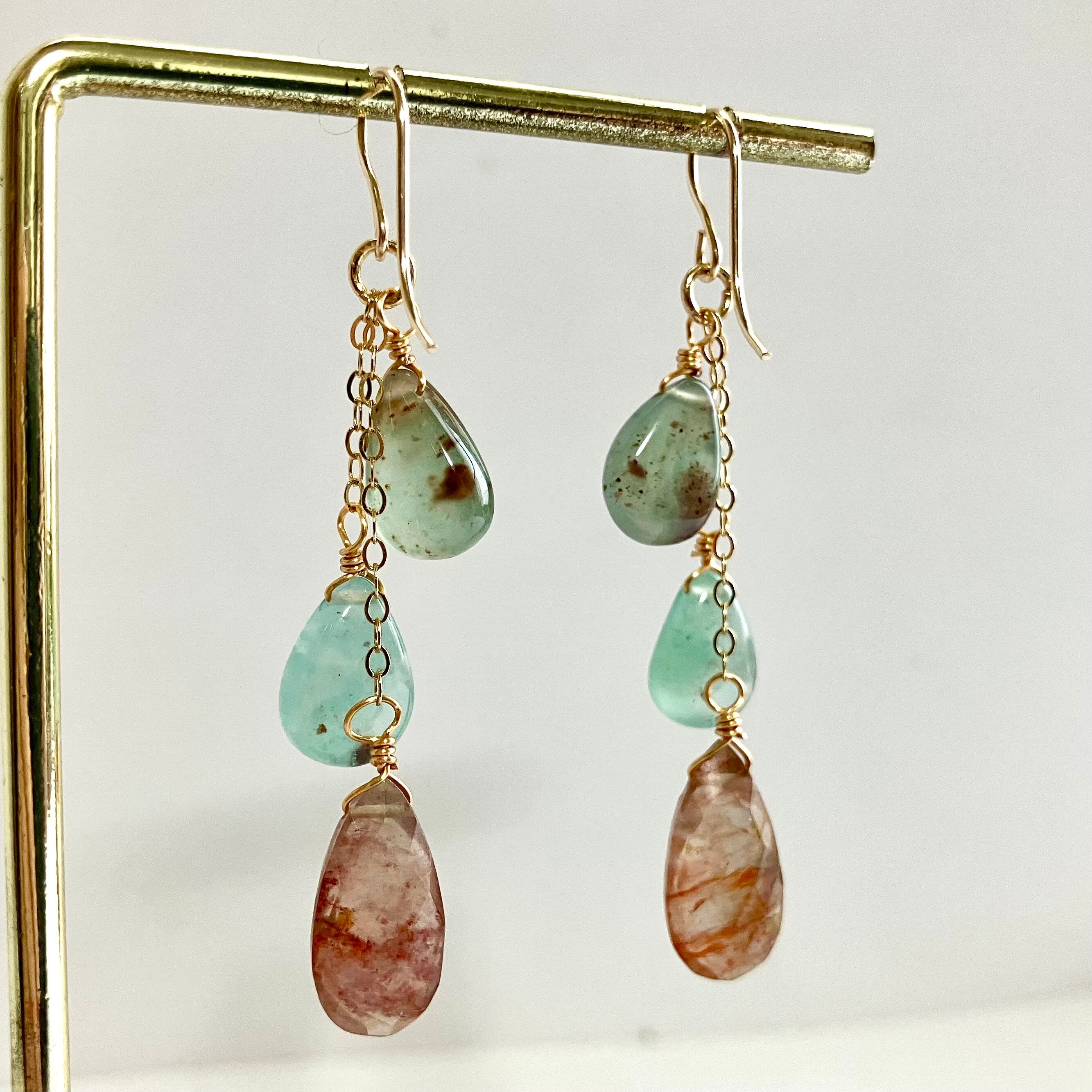 チョコミント♪アクアプレーズとレッドヘマタイトクォーツのピアス