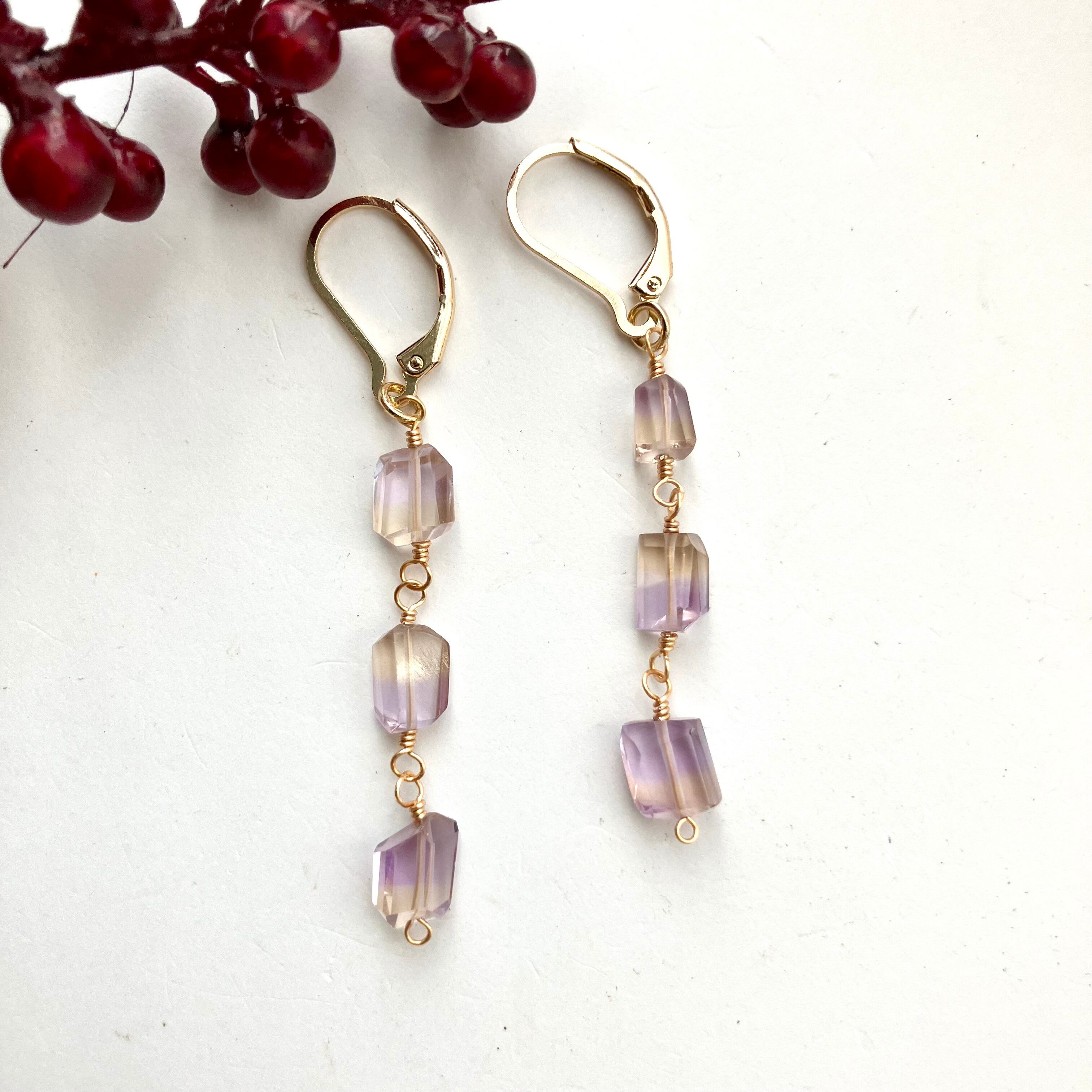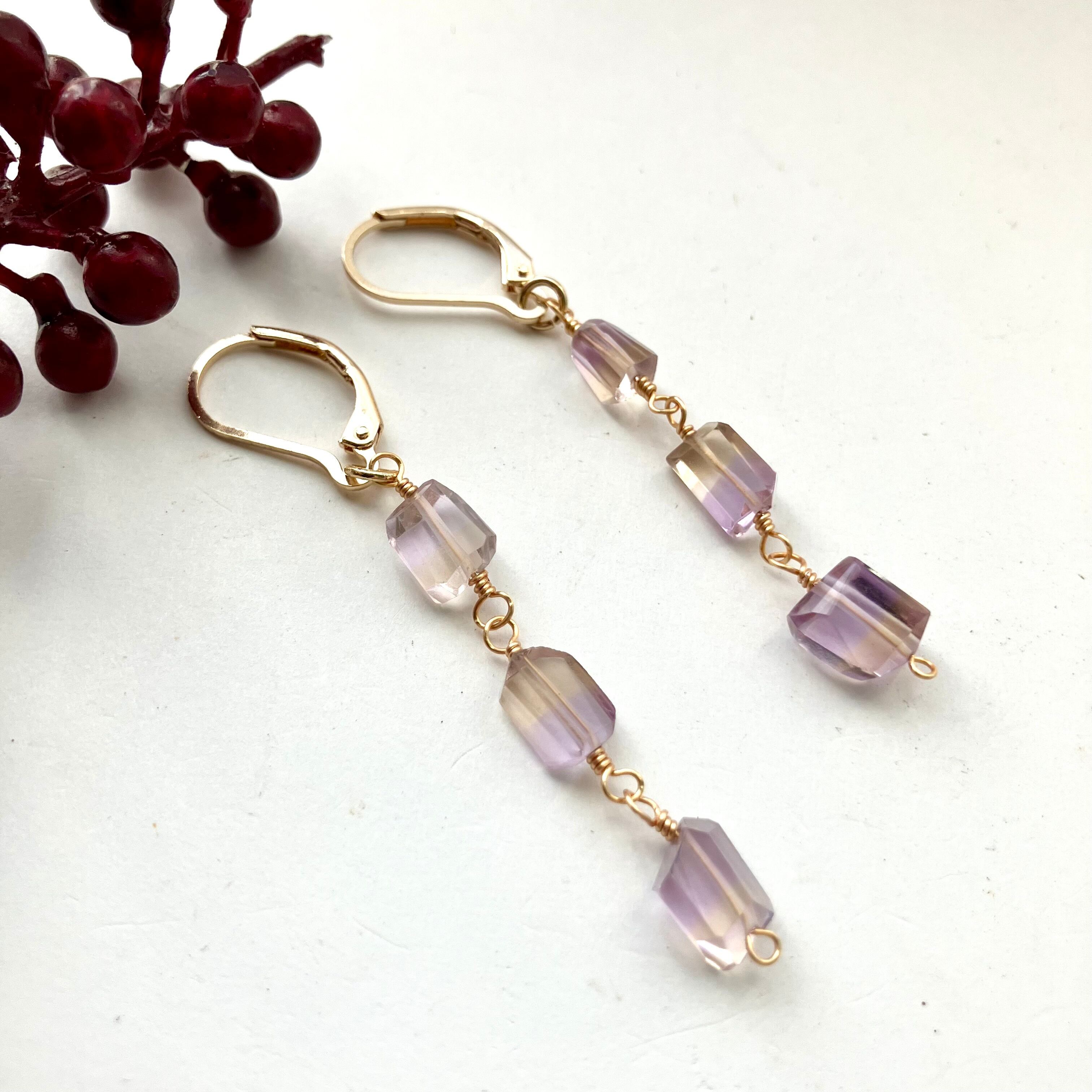 宝石質⁖✦ ˖アメトリンのタンブルカットピアス