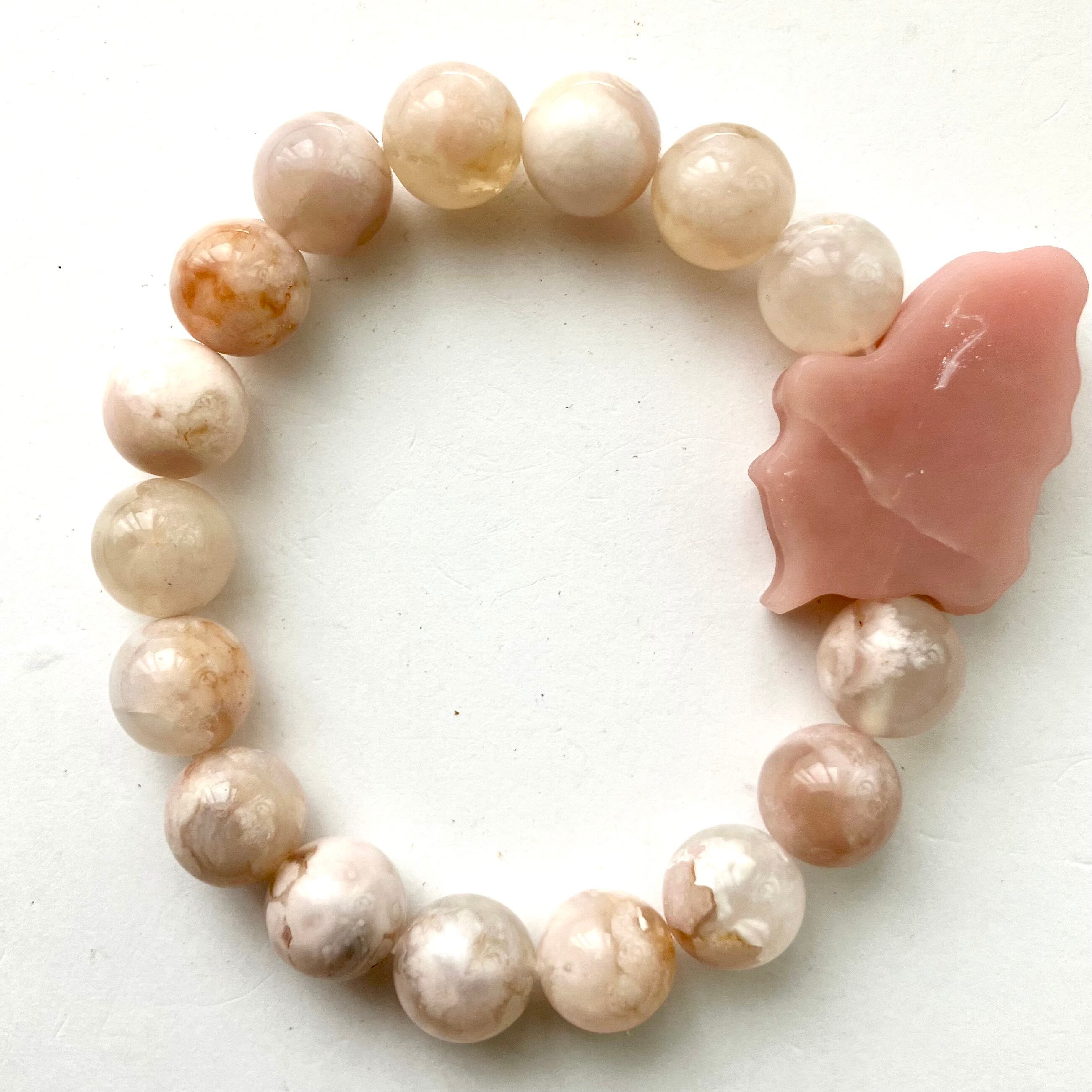 ピンクオパールの妖精さんと桜瑪瑙のデザインブレスレット
