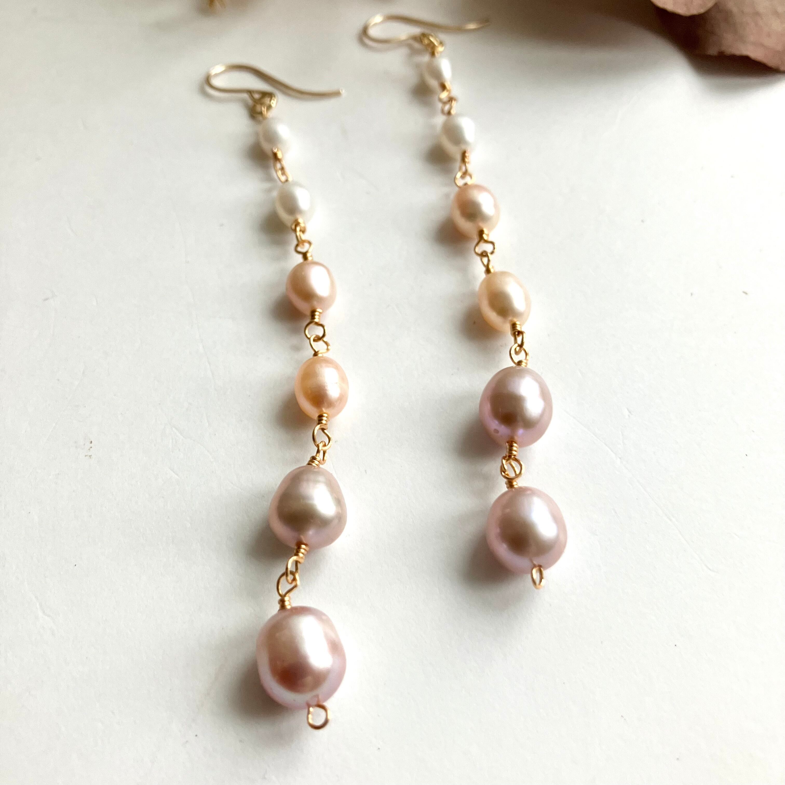 サイズ&カラーグラデーション˖ ࣪⊹淡水パールのピアス