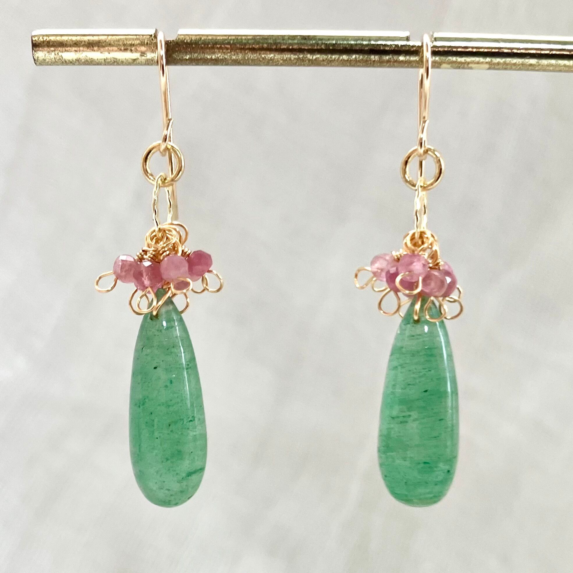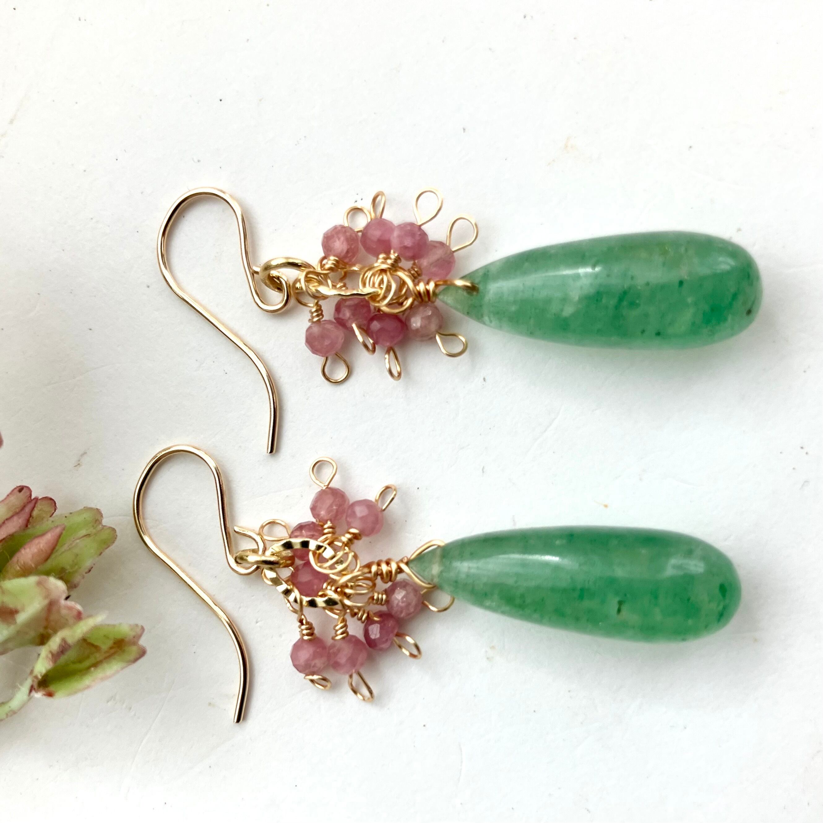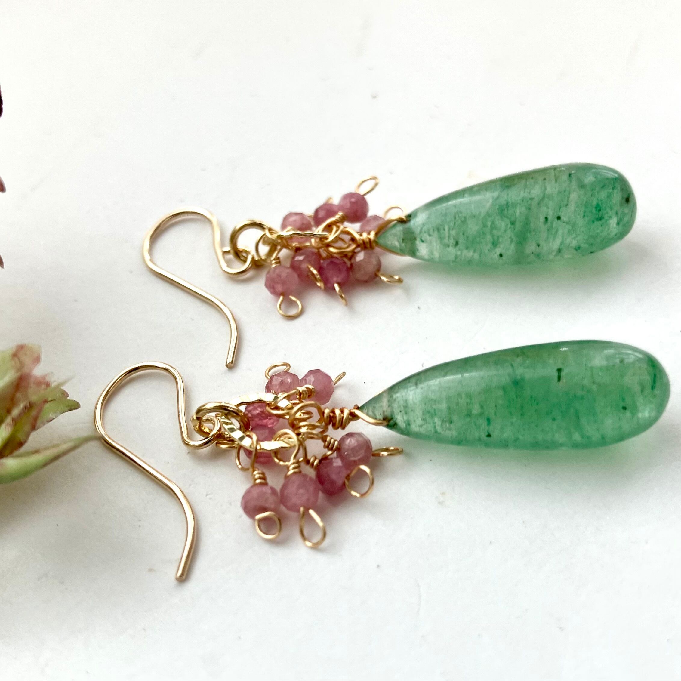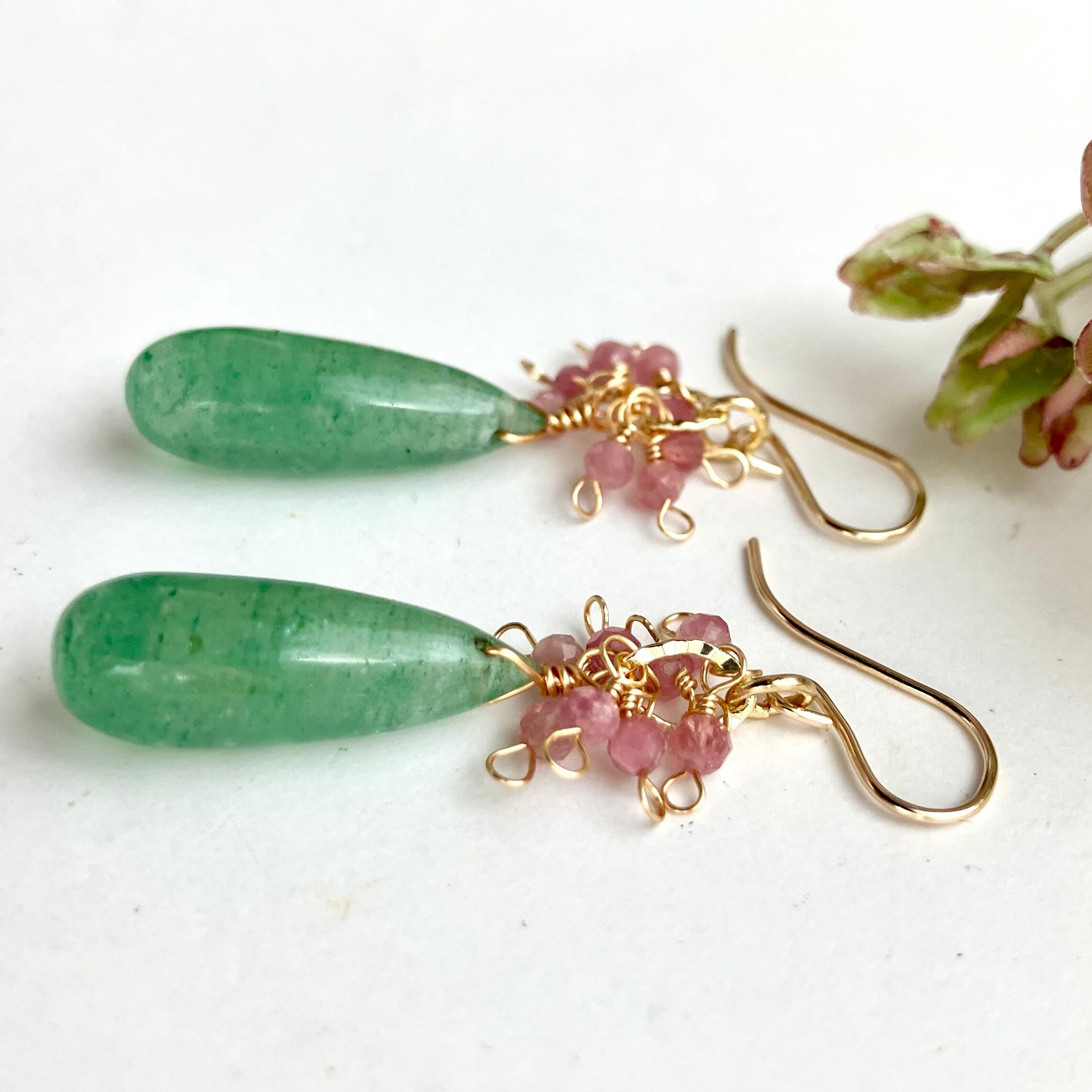 グリーンアベンチュリンとピンクトルマリンのピアス