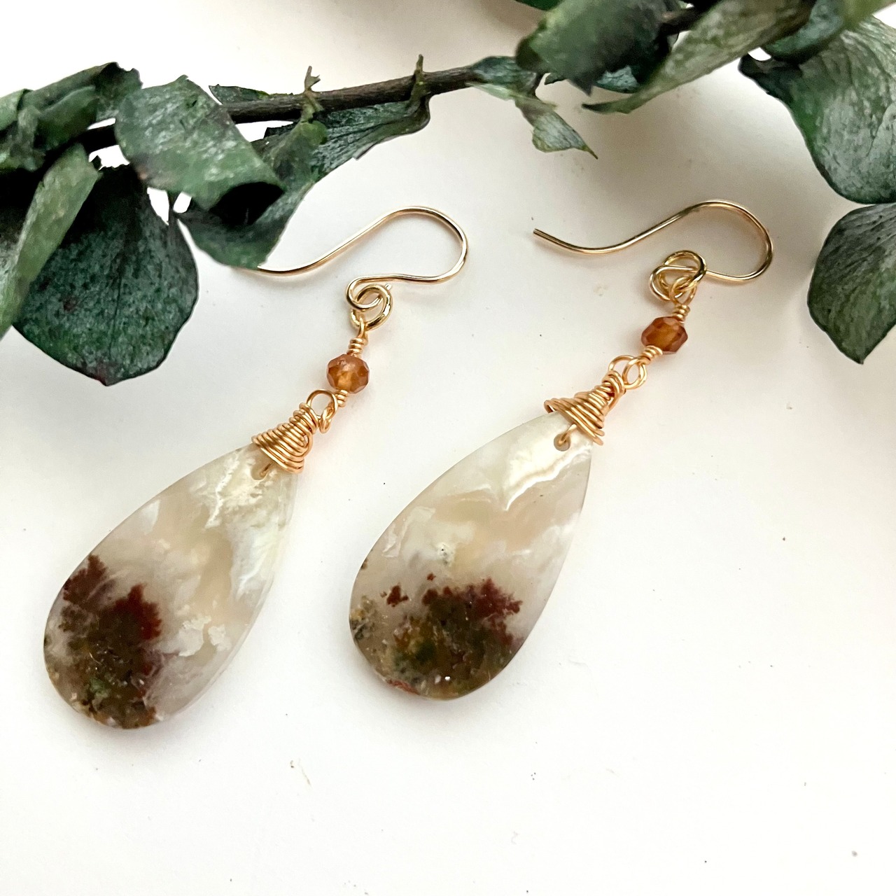 一点物モスアゲートのピアス、イヤリングです。