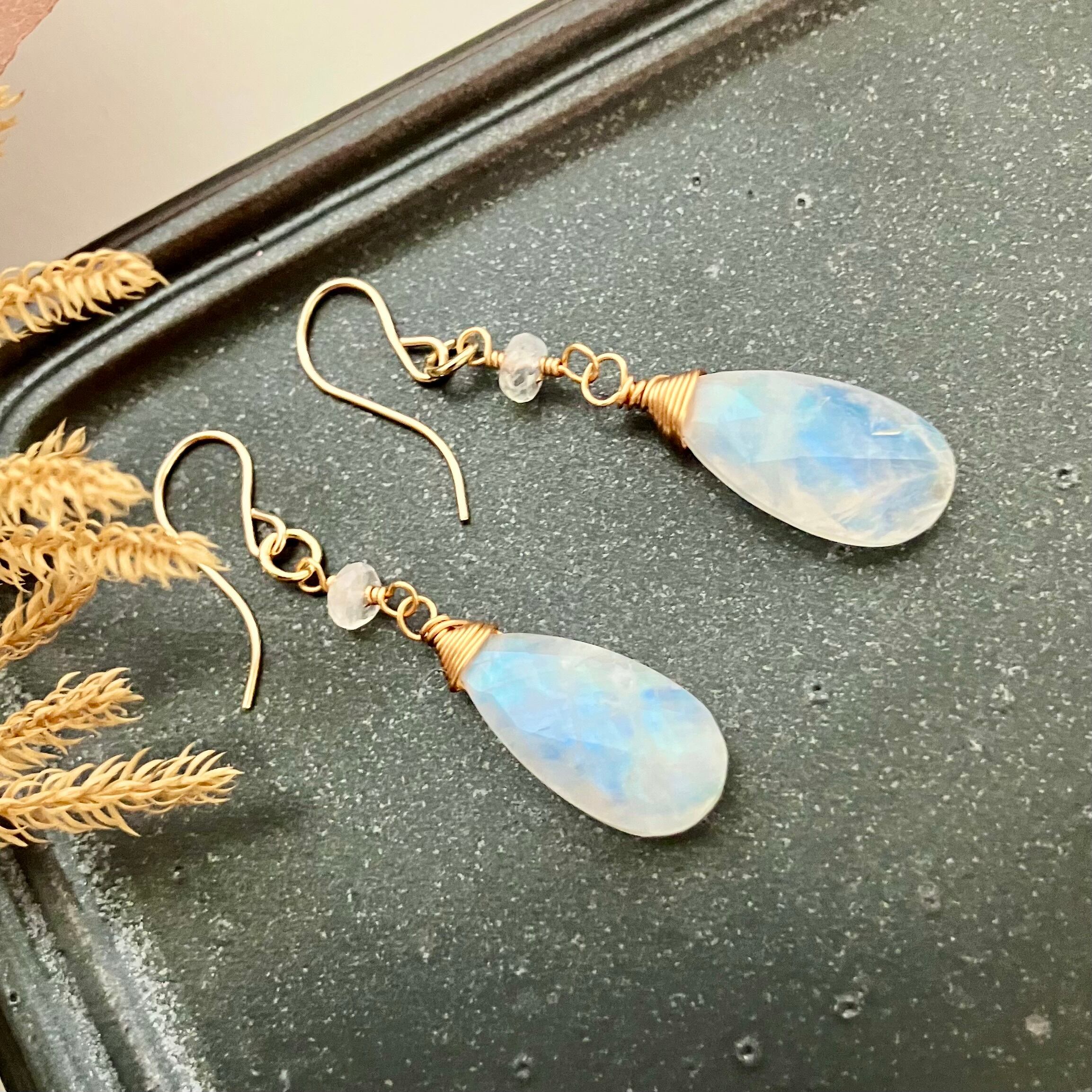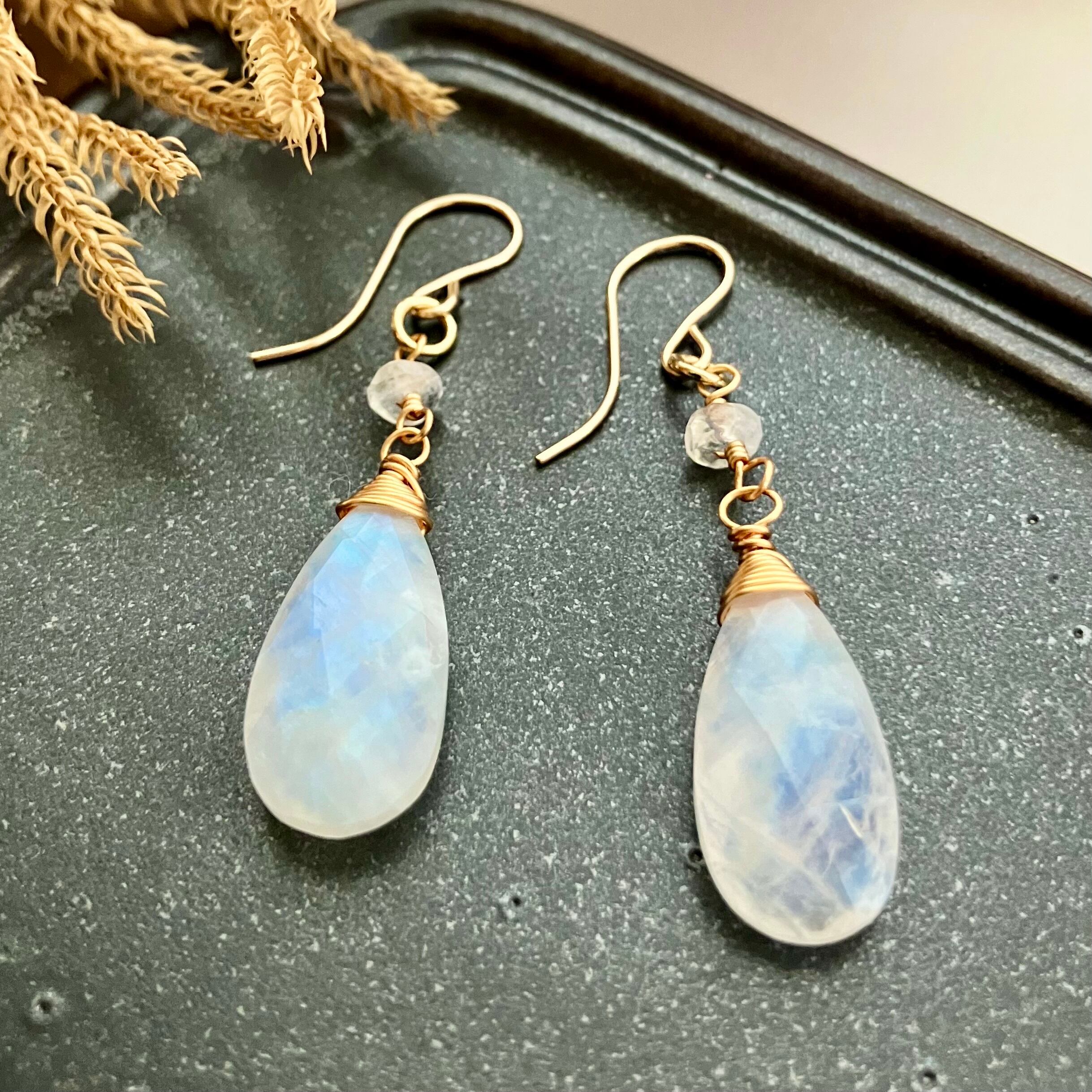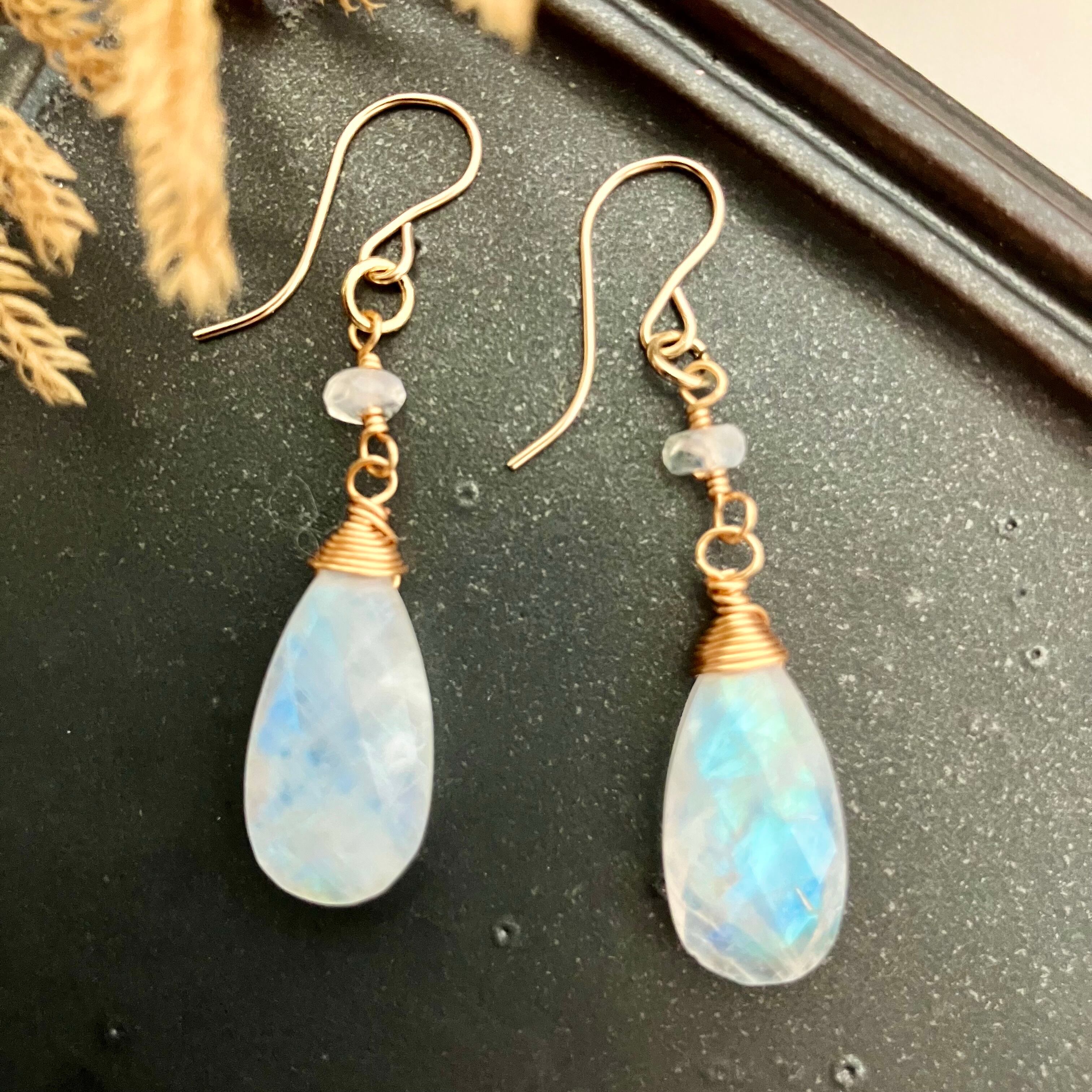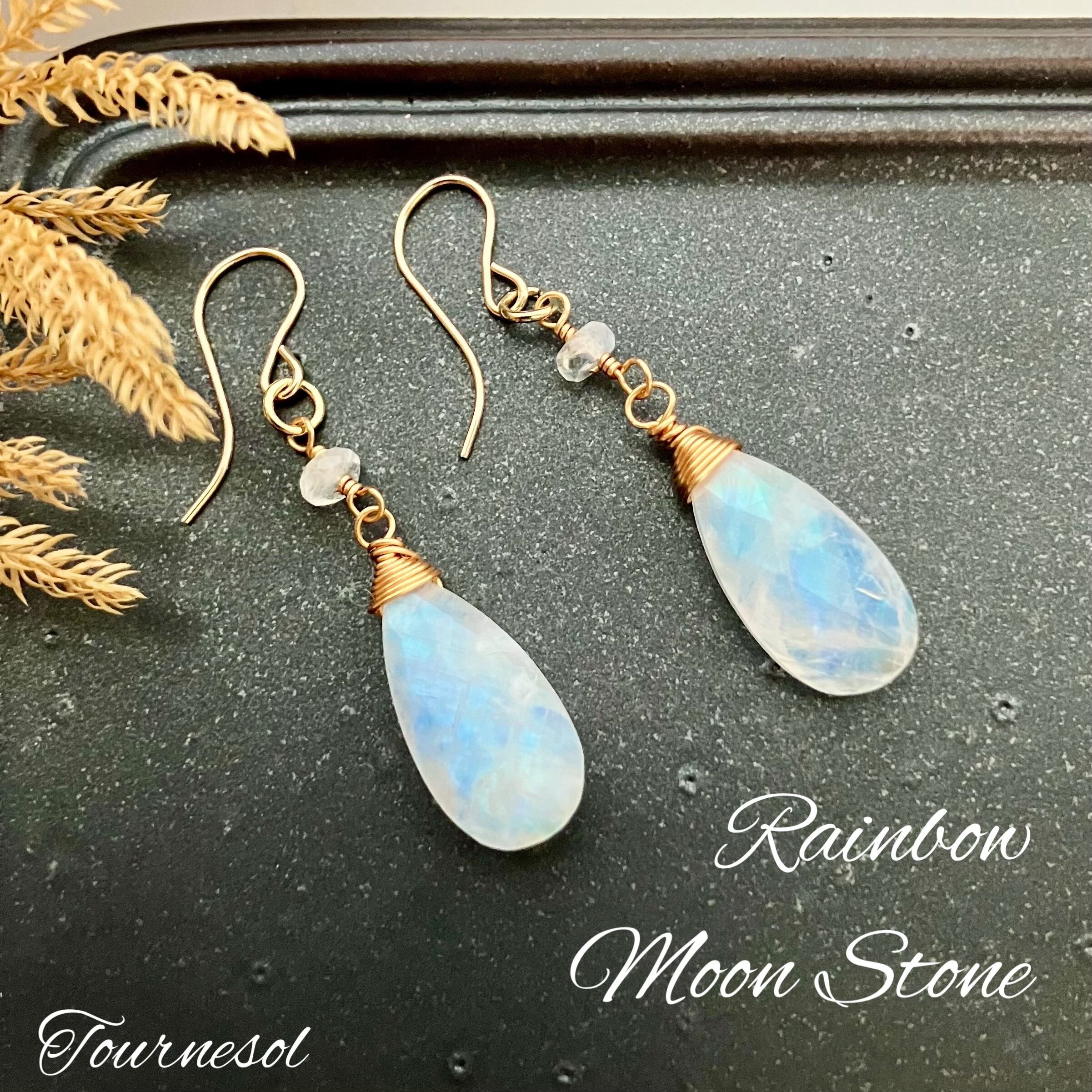 美シラー✧レインボームーンストーンのピアス