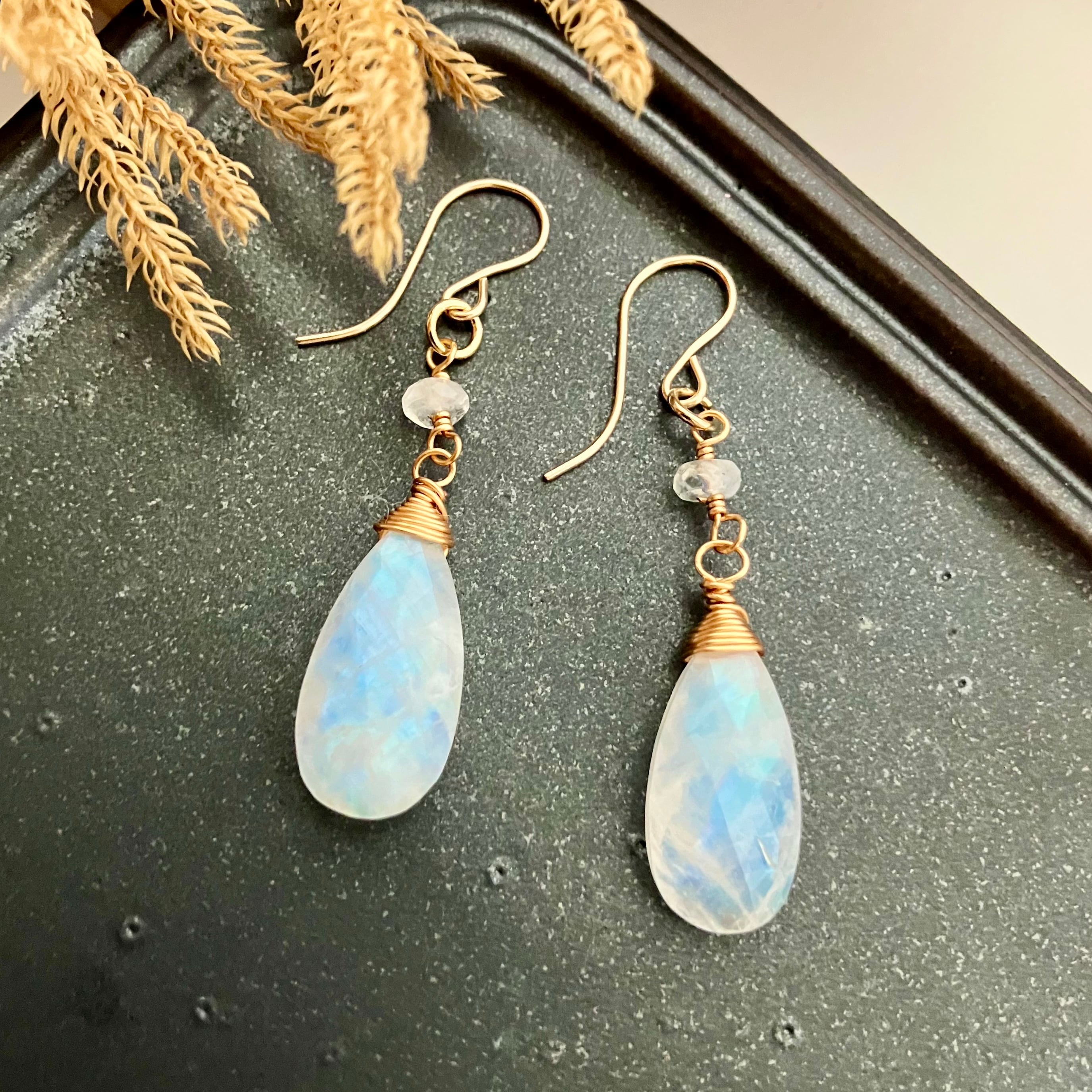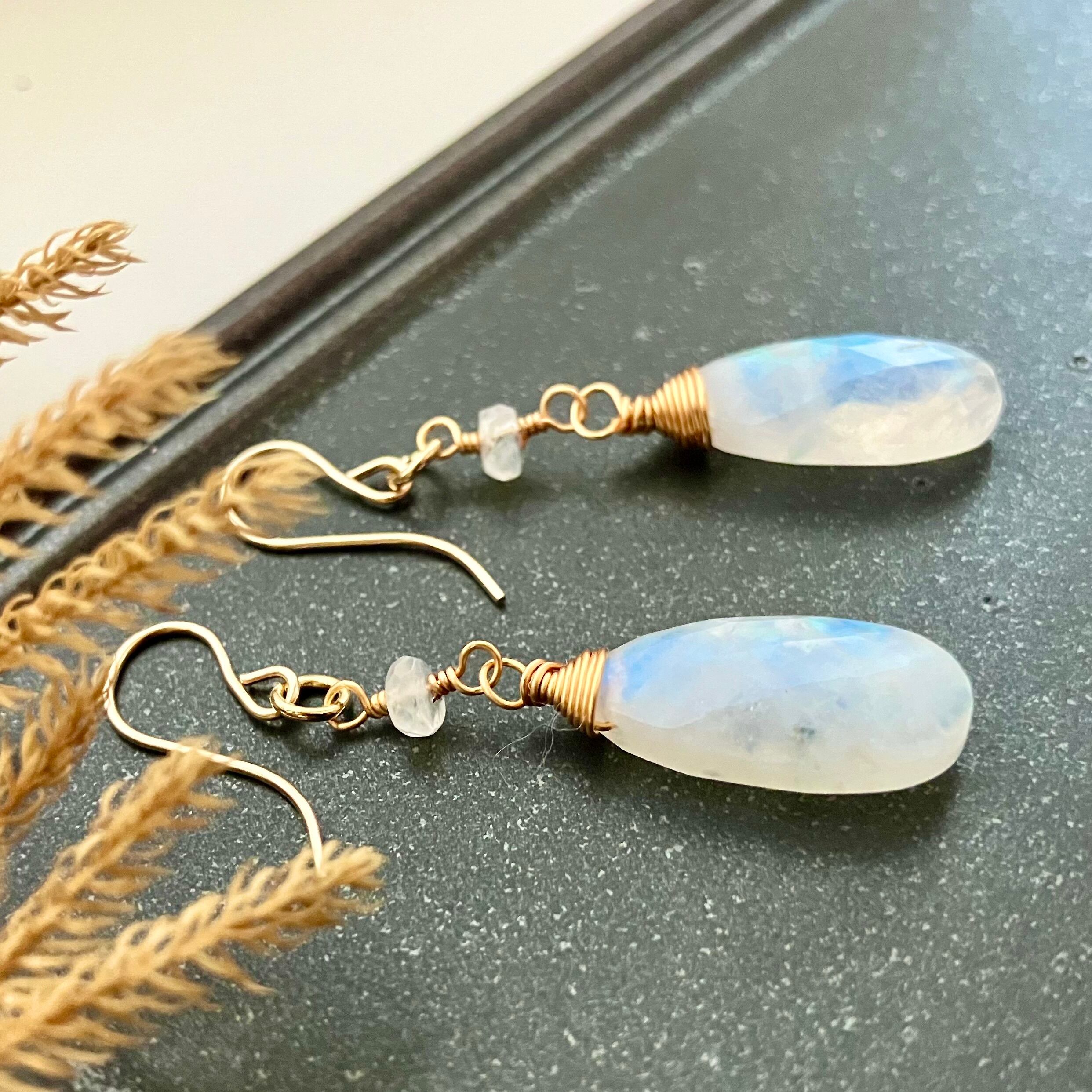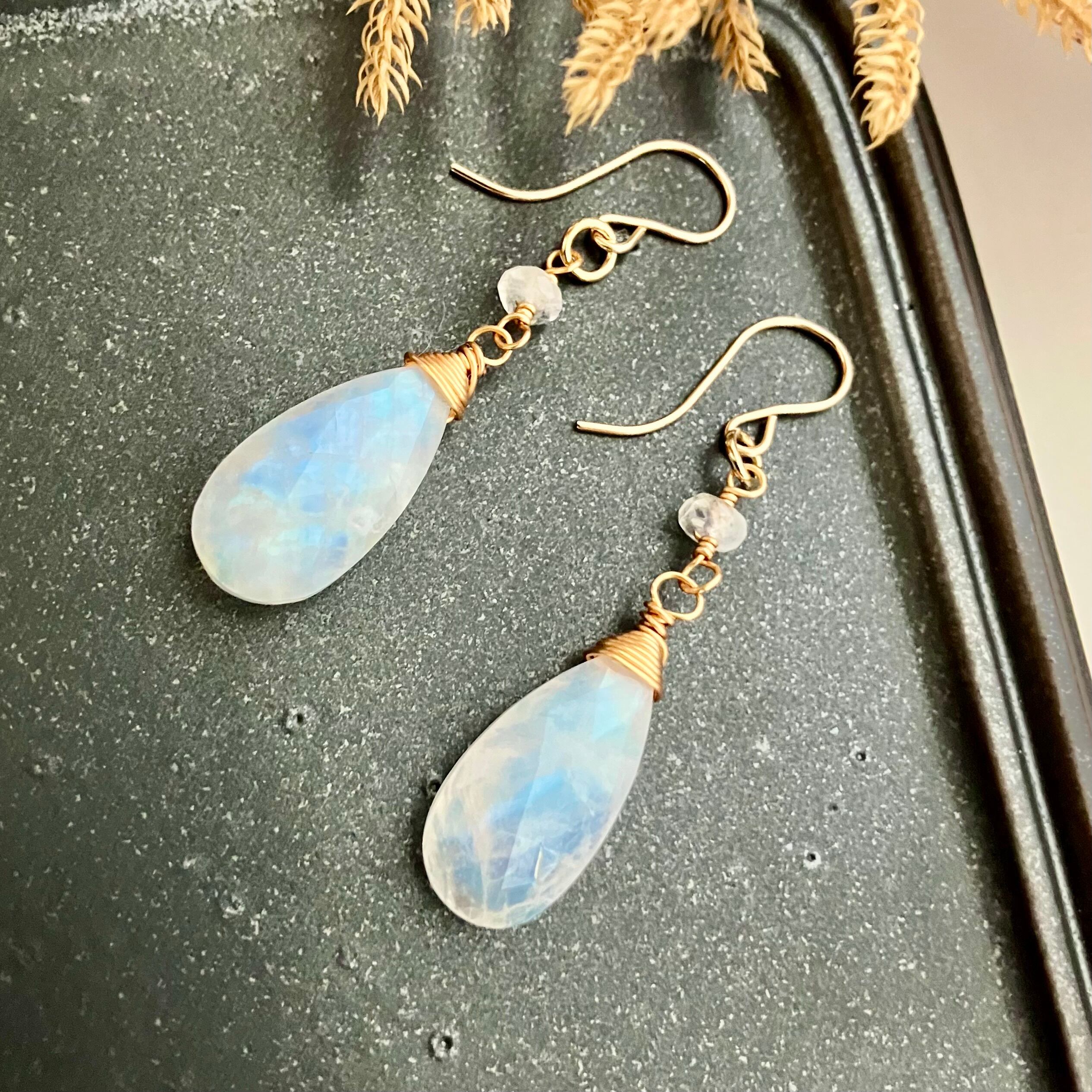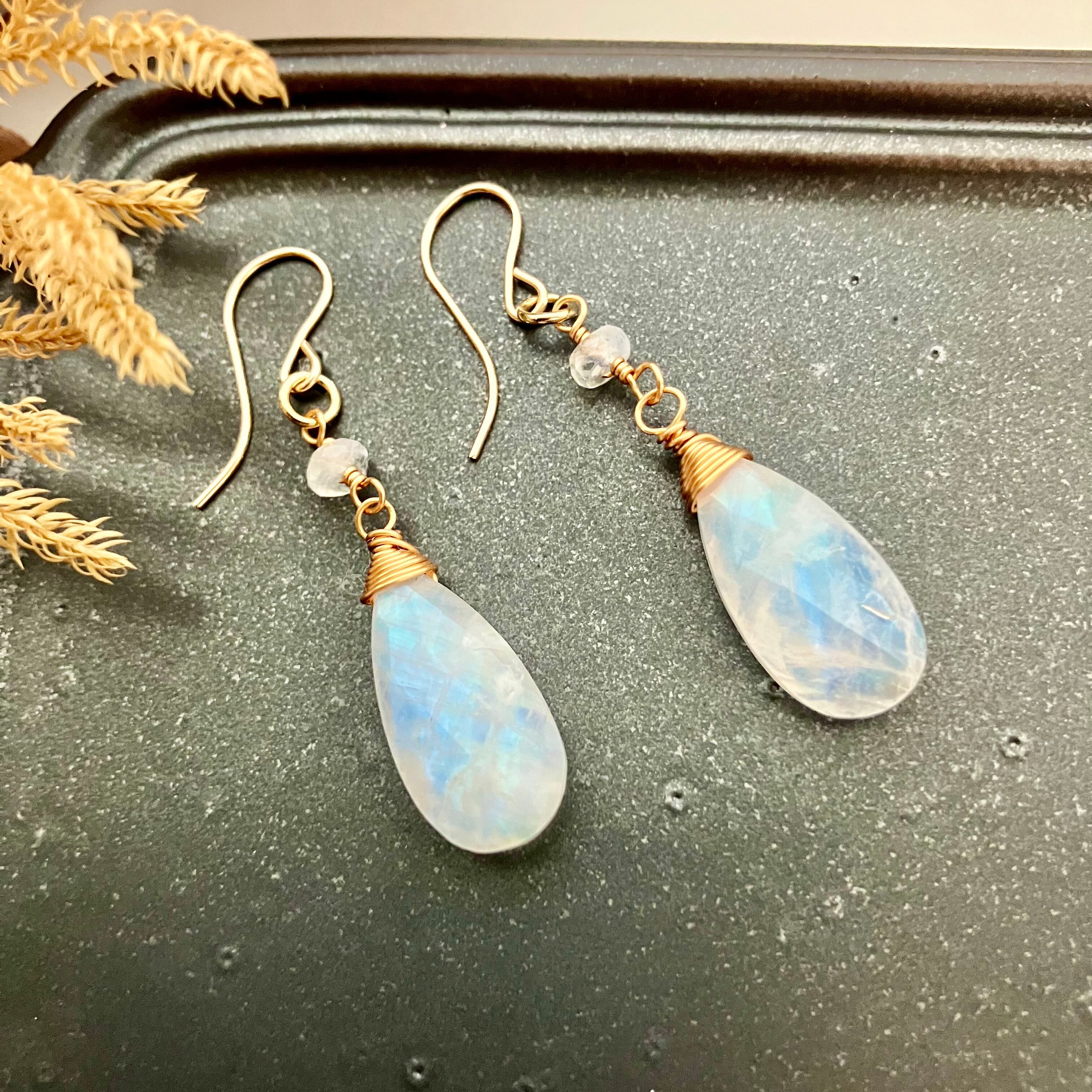 美シラー✧レインボームーンストーンのピアス