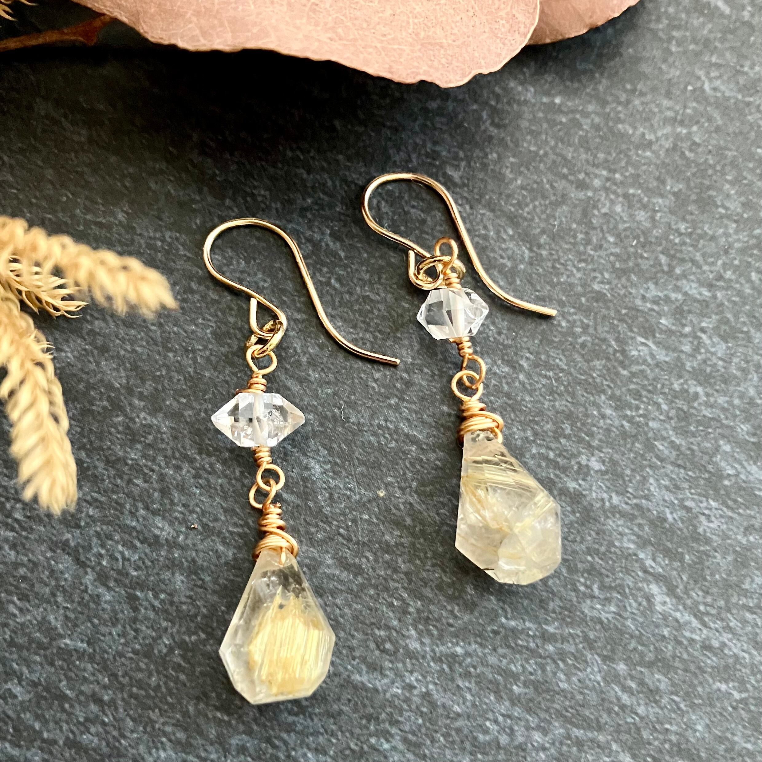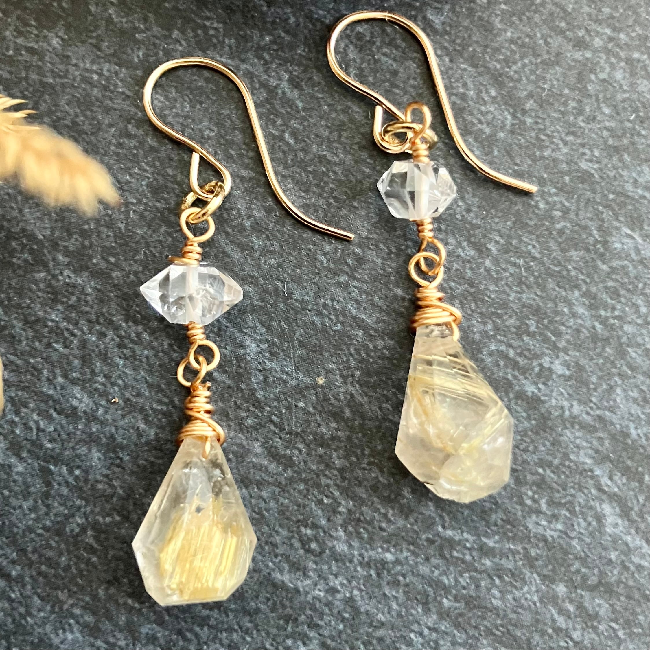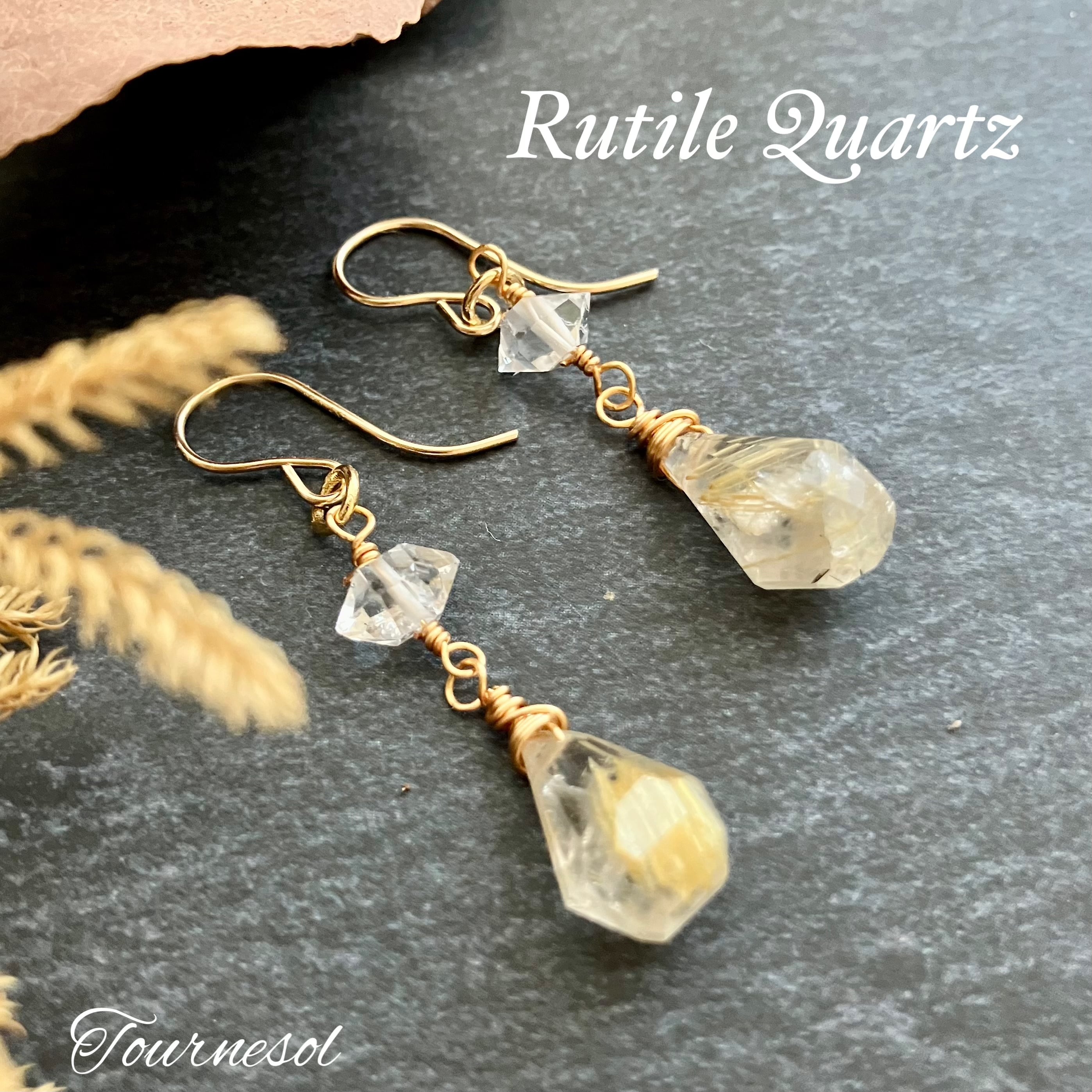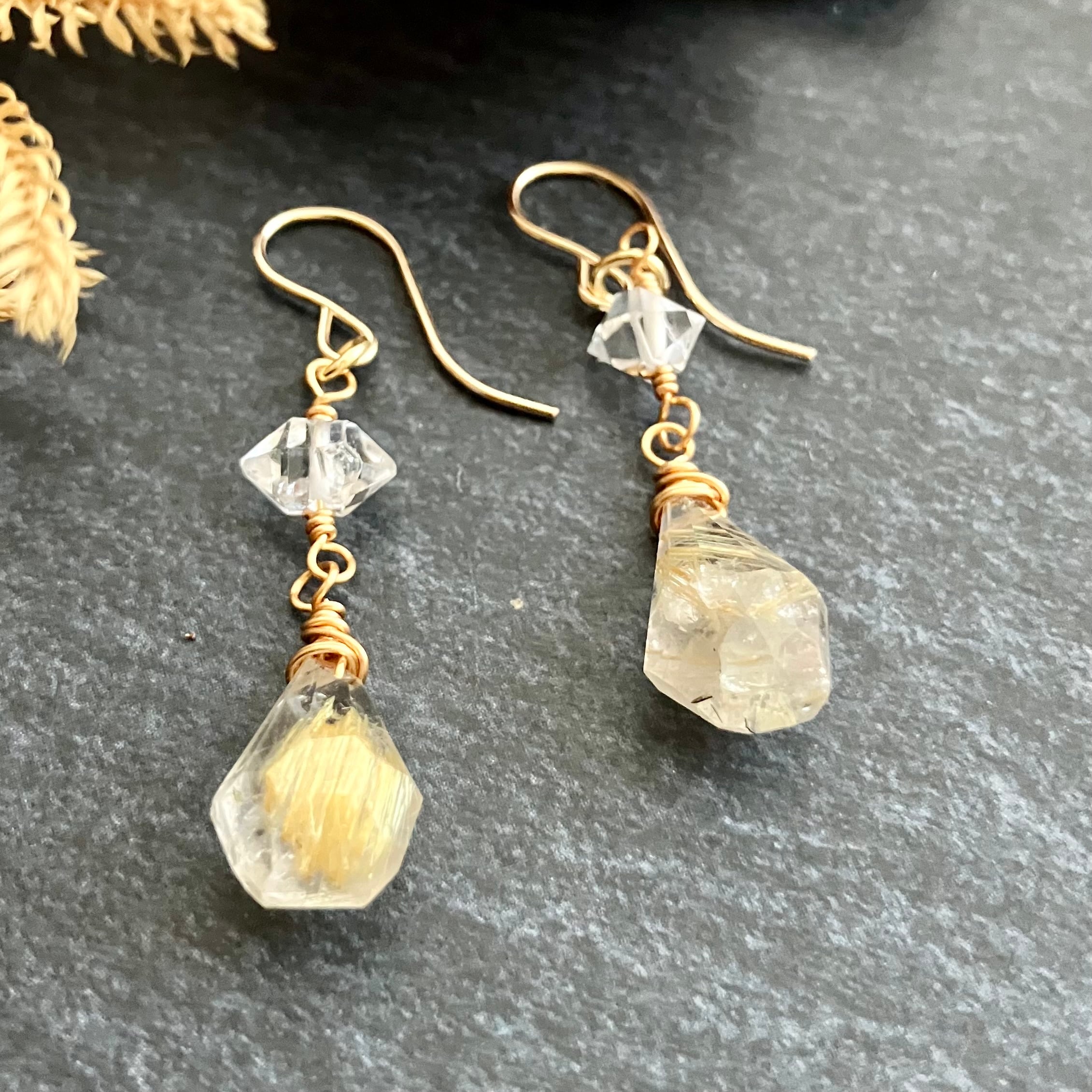 良い一年に✩⡱ルチルクォーツとハーキマーダイヤモンドのピアス