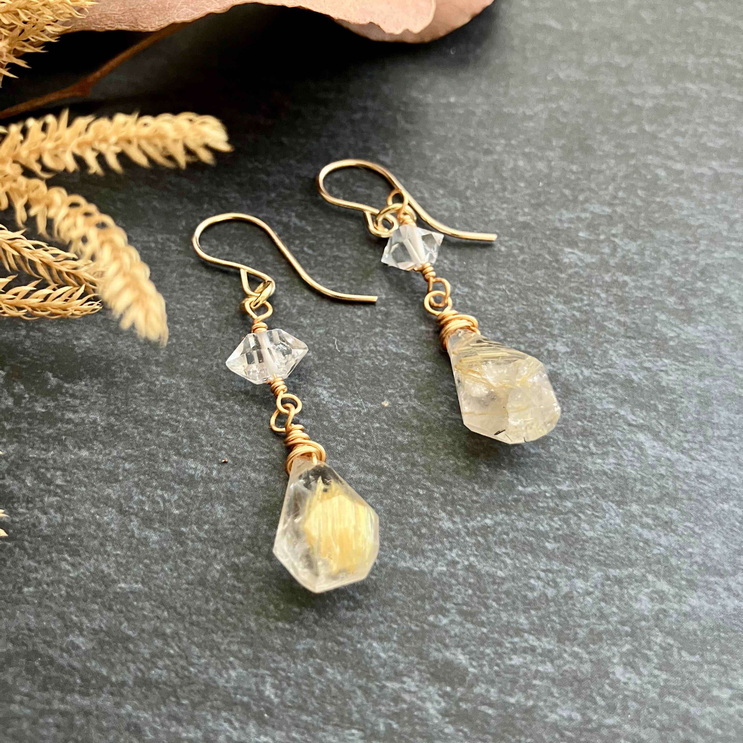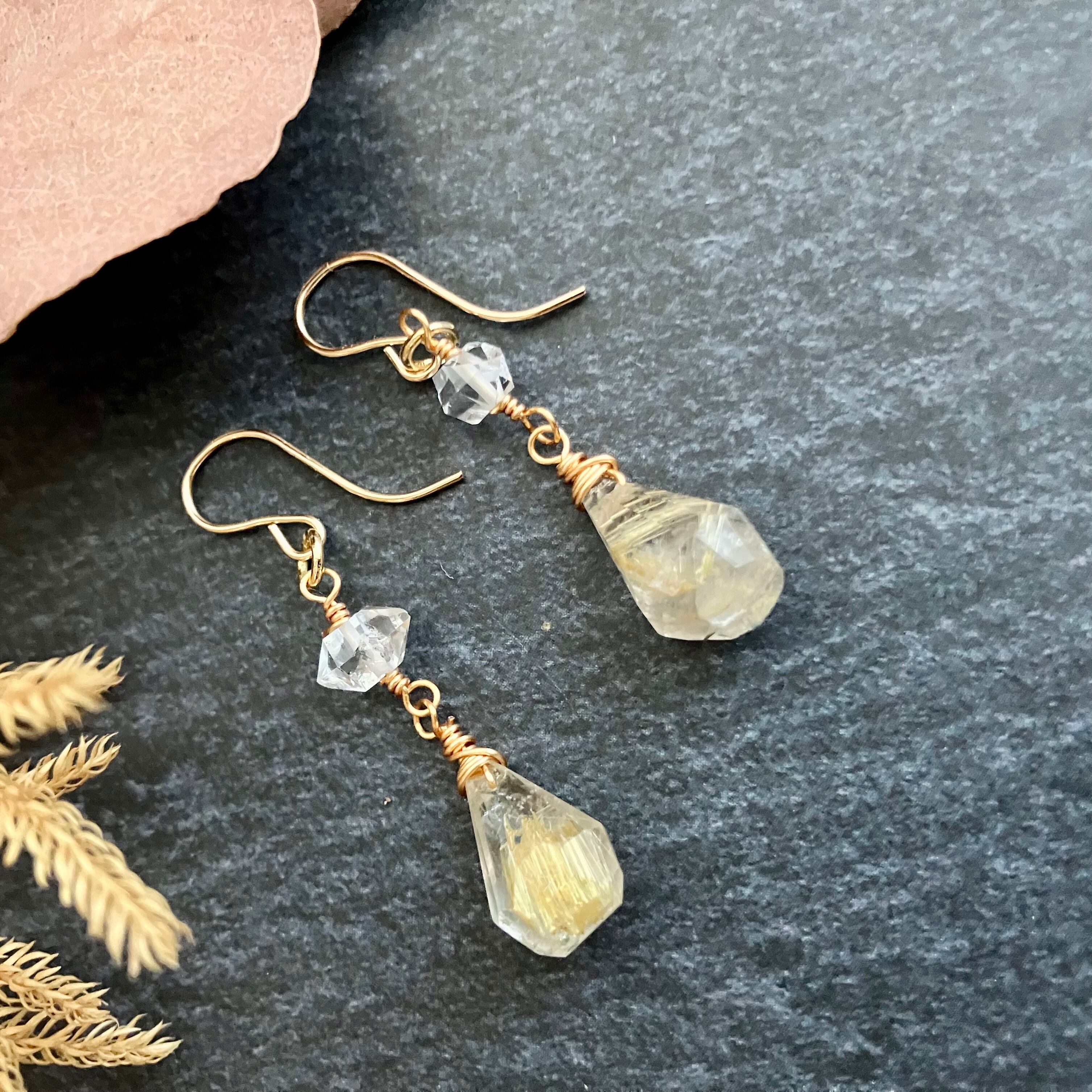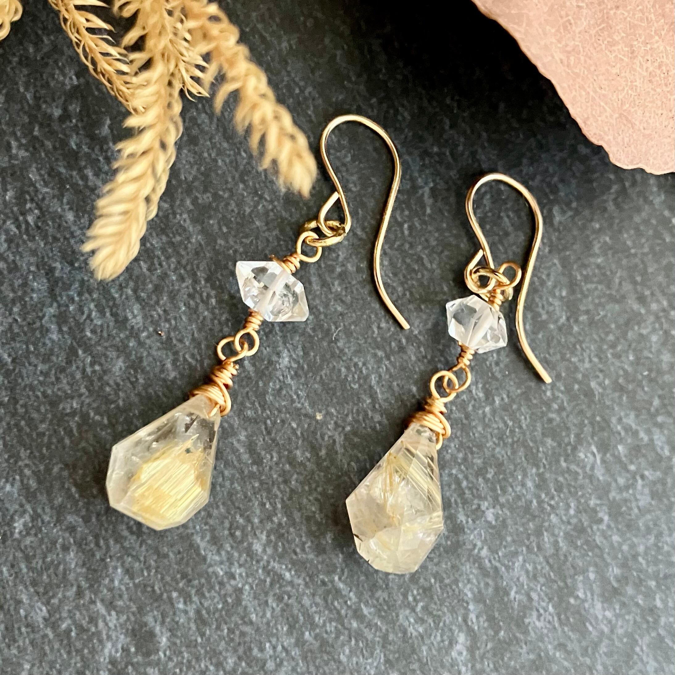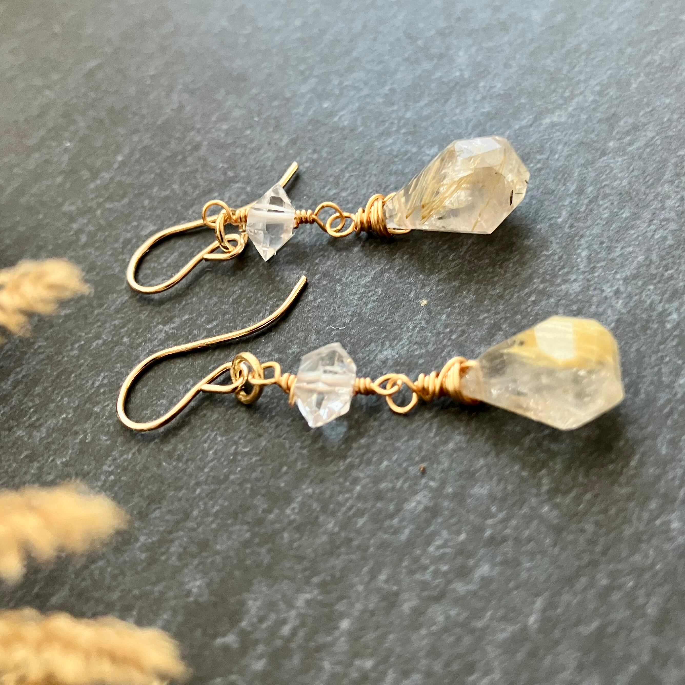 良い一年に✩⡱ルチルクォーツとハーキマーダイヤモンドのピアス