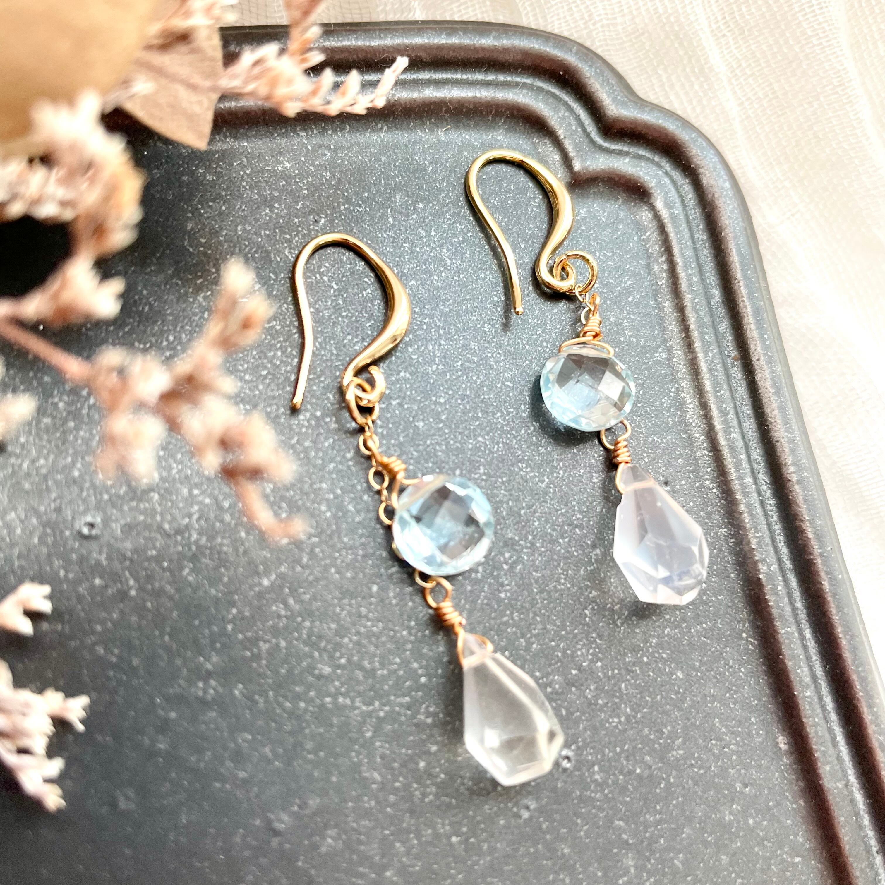 スカイブルートパーズと宝石質ロイヤルブルームーンストーンの小振りピアス